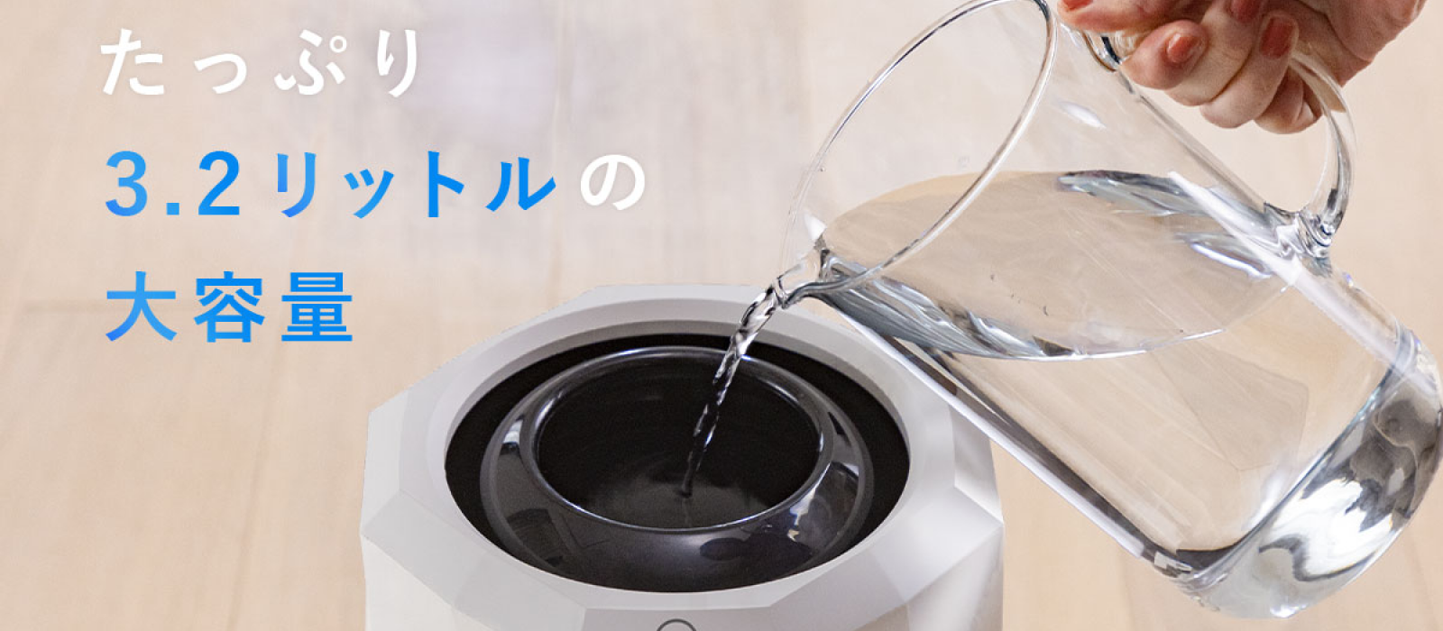 その特徴は電気代を抑えながら、広範囲への加湿が可能なこと。ファンを使うことで部屋全体をゆっくり加湿できるため、「加湿ムラ」を防げます。同時に、結露の原因となる過加湿も抑制。1回の給水で連続加湿が可能なため、給水する頻度も少なくて済みます。